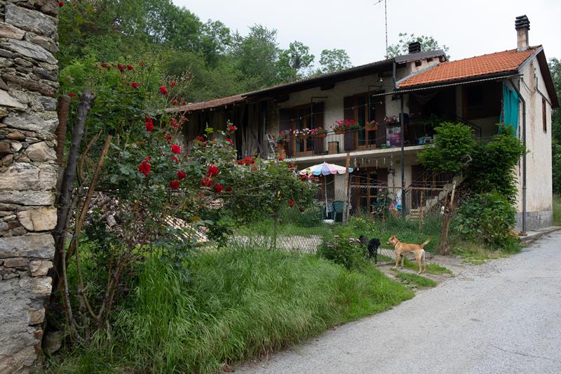 Il toponimo deriverebbe dall’occitano coumba, tratto di fondovalle rinserrato da alti versanti, vallonetto. Sul lato dronerese sorge un pilone che nella nicchia custodisce una statua in marmo della Vergine, e dipinti di Santa Caterina, Papa Giovanni XXIII, San Giuseppe e l’Angelo custode con bambini. Venne eretto dal padre di Gino Chiapello cone ex voto per essere ritornato dalla guerra.