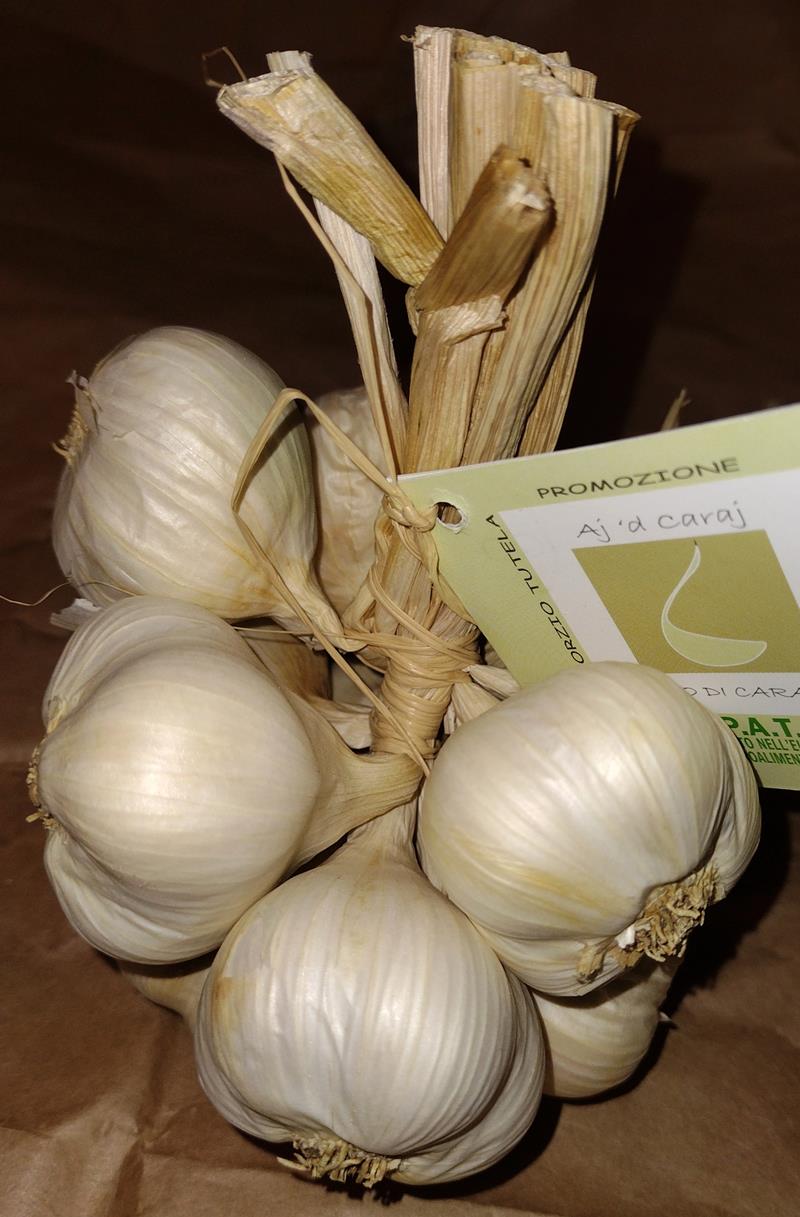 L’aglio storico di Caraglio è un P.A.T. ed è Presidio Slow Food: ha dimensioni piccole, sapore dolce e delicato, molto digeribile. Viene raccolto intorno al 24 giugno ed è pronto per essere consumato dopo 40 giorni di essicazione. È utilizzato per produrre una crema per carni e tartine, il sale all’aglio, l’aglio marinato e quello nero, fermentato.