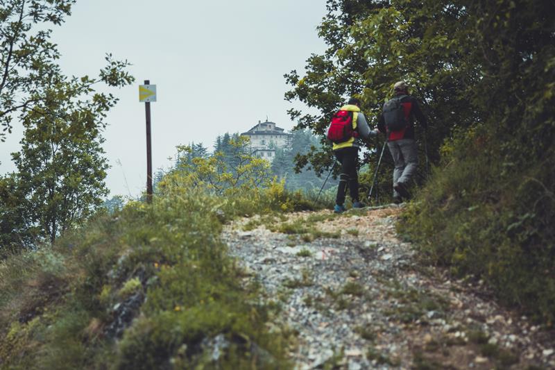 Da qui una digressione segnalata permette di raggiungere i ruderi del castello attribuito alle leggendaria Reino Jano, la regina Giovanna d’Angiò. Ritornati sul percorso, dopo un breve tratto in asfalto, una nuova pista forestale, che si snoda tra magnifici castagneti ben curati, permette di riguadagnare quota e tornare verso la displuviale tra le valli Grana e Maira nei pressi del pilone dei boscaioli prima di chiudere l’anello nel centro di Montemale.